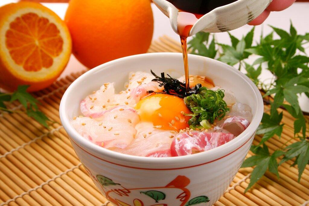 新鮮な鯛のお刺身が入った贅沢な卵かけご飯は天下一品!日本でも宇和島にしかない鯛めしです。